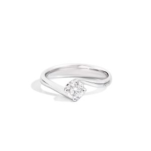 Girocollo tre pietre, oro bianco 18 kt 2.49 gr e diamanti a scalare naturali taglio brillante forma cuore 0.51 CT F-VS
